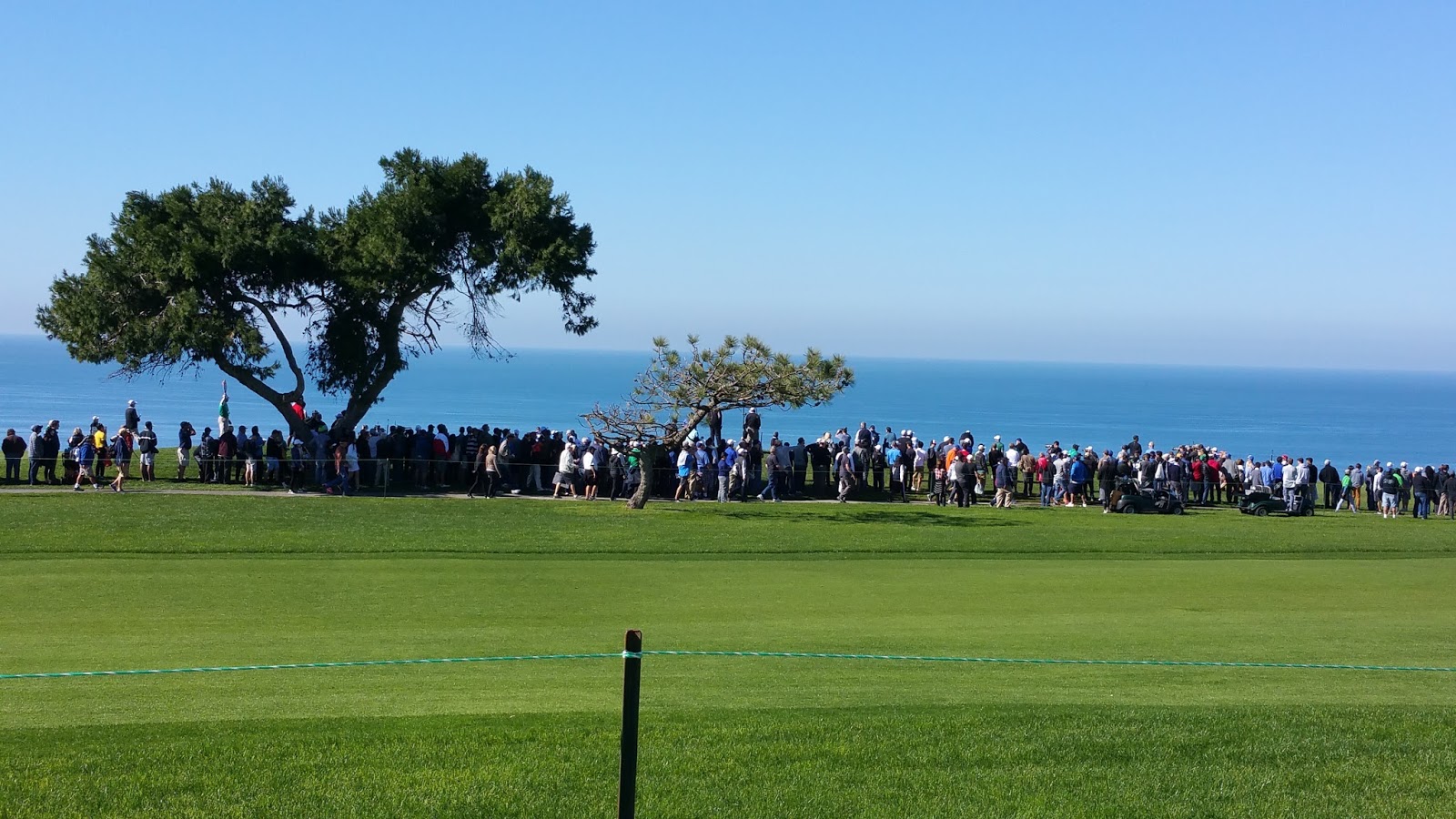 Day 29 Thu, 1/26: Today was a day at the Farmers Insurance Open at Torrey Pines Golf Club in La Jolla. We were up early and on the road with all the commuters, but it wasn’t too bad a drive. Parking was at the Del Mar Fairgrounds Race Track and then shuttle to the tournament. The sun was out but a little windy, so a light jacket was just right. When we got out of the wind we actually got too warm, so it was a day of jacket-on, jacket-off, jacket-on, jacket-off. There were spectacular views of the ocean from many of the holes. It was a beautiful golf course. Because it was the first day of the tournament, the crowds were light, but most everyone was following 2 groups: Tiger Woods, Jason Day and Dustin Johnson and Phil Mickelson, Rickie Fowler and Jimmy Walker. You could tell who was on what hole by the size of the crowd alone.